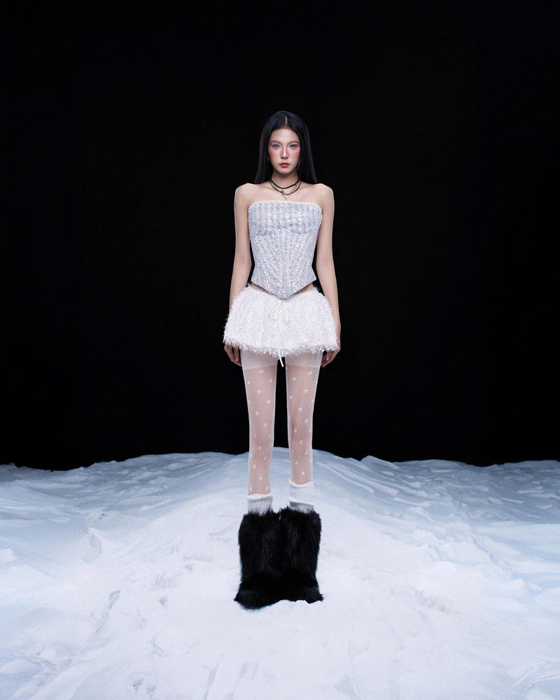 Halter backless faux-fur top.