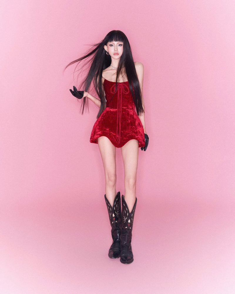 Halter backless faux-fur top.